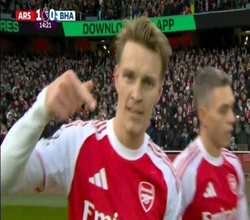 英超第18轮,阿森纳主场对阵布莱顿,上半场厄德高远射破门,斩获个人本赛季在阿森纳的首粒进球。