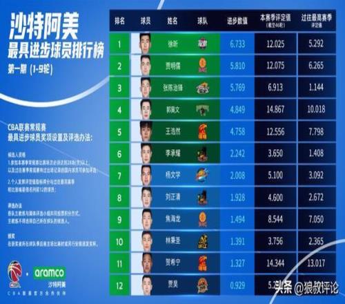 CBA球员进步榜!广东旧将第一,山西两人入选,韩德君接班人第三