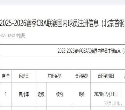2025-26赛季CBA常规赛第九轮比赛即将开打,元旦假期的“京粤大战”也正式进入最后倒计时。赛前,一则关于实力不俗的北京首钢男篮紧急注册曾凡博的消息沸沸扬扬。据CBA官方公示信息来看,北京首钢队已正式完成锋线核心曾凡博的注册手续,双方签订的是一份为期三年的B类合同。这意味着,此前因合同问题缺席赛季初期部分比赛的锋线大侧翼曾凡博,已完全具备代表北京首钢队出战的资格,并确认在明晚主场迎战夺冠大热门广东男篮的比赛中迎来本赛季的首秀。