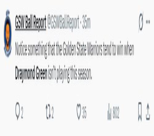 但勇士媒体:注意到一个现象,本赛季当德雷蒙德-格林没有上场时,勇士队往往会获胜。