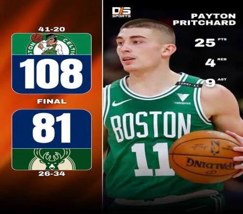 NBA战报:凯尔特人10881大胜雄鹿取NBA3连胜,普里查德25+4+9