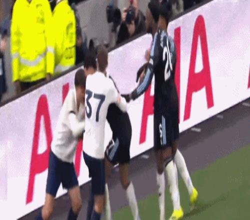 这次群架的导火索,在于比赛第85分钟,当时热刺已经1-2落后,心态失衡的帕利尼亚,在边线附近一次毫无必要的“废人”式飞铲,掀翻了罗杰斯。后者痛苦倒地打滚,看到爱徒遭到恶劣侵犯,场边的维拉主帅埃梅里,愤怒摊手抗议。