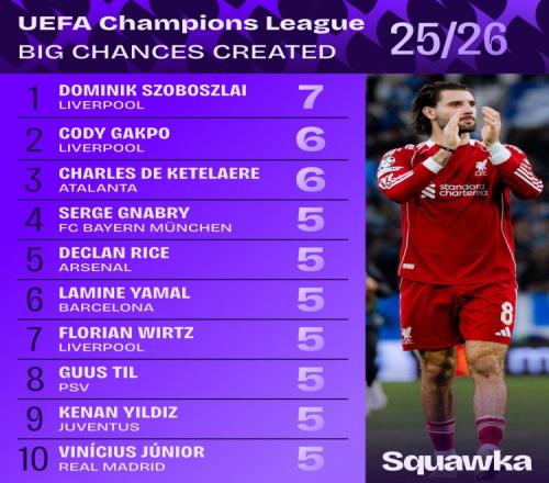 本赛季,利物浦的索博斯洛伊在球队中扮演了创造力的核心角色,尤其是在激烈的欧冠赛场上表现尤为抢眼。根据Squa...