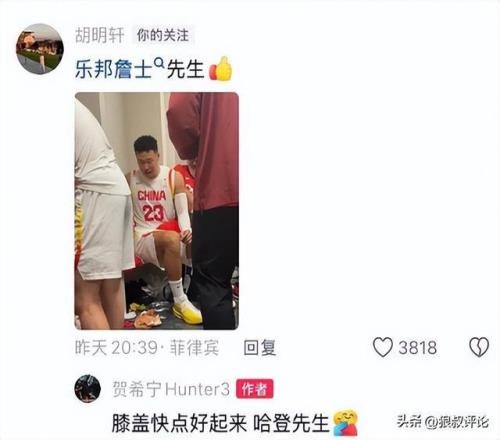 北京时间3月3日,根据网友的报道,中国男篮队员胡明轩现身国家体育局总局医院治疗膝盖的动态曝光,这名28岁的男篮国手,虽然此前参与了完整的男篮集训周期,但并没有入选最终的12人名单。