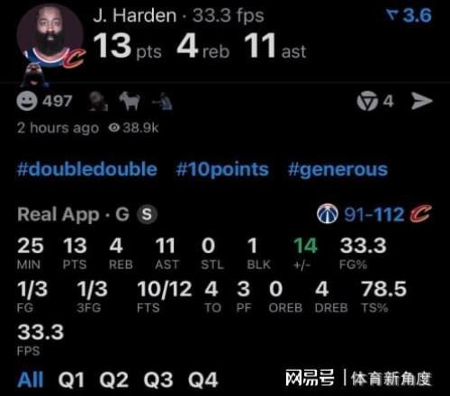 而哈登呢,也没有辜负骑士主场球迷的期望!比赛进行到第三节结束,哈登已经打了25分钟,虽然只有3次出手命中1球,但却凭借着出色的罚球技术,拿到了13分!1个进球13分,这效率,简直让人瞠目结舌!我们熟悉的那个登哥,他真的回来了!
