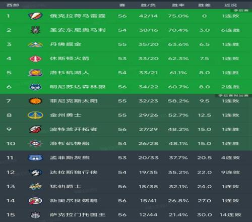 北京时间2月13日,今日的NBA常规赛结束了所有比赛,我们看看西部的最新排名!