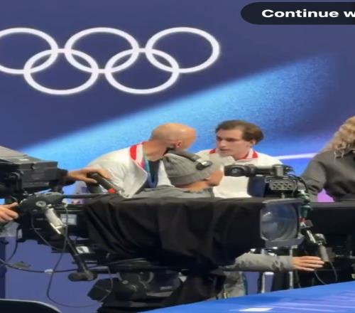 镜头切到外场。Benoît穿着美国队服,紧紧坐在Maxim身边。