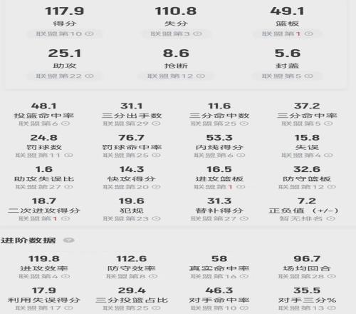 数据显示,火箭目前为止得分117.9联盟第十&进攻效率119.8第四,防守效率112.6第八&失分110.8第三,篮板49.1第一,然而助攻25.1第22与回合数96.7第28,已算得上攻防兼备仅需范弗利特归来帮他们提速和增强外线投射。