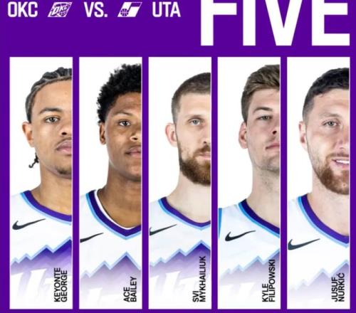 首发阵容方面,雷霆队这边,亚历山大缺战今日比赛,教练排出的首发五人组为:杰林-威廉姆斯、卡森-华莱士、阿杰伊-米切尔、杰伦-威廉姆斯和切特-霍姆格伦;爵士队这边,马尔卡宁缺阵,首发阵容则为:基扬特-乔治、贝利、米哈伊柳克、菲利波夫斯基、努尔基奇。