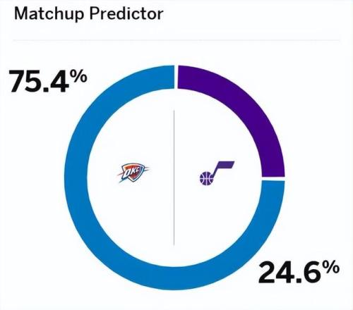 赛前,美媒ESPN对本场比赛进行了胜率预测,雷霆队胜率高达75.4%,爵士队胜率则仅有24.6%,差距非常明显。