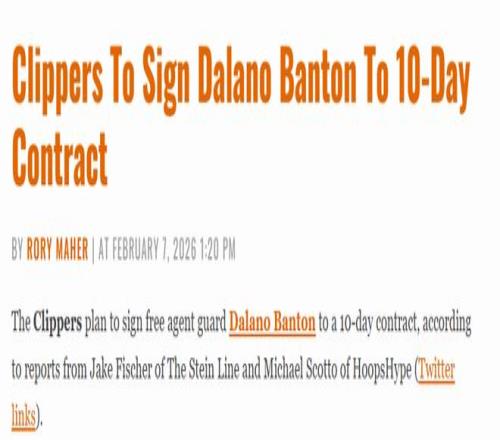 快船交易截止日前完成三笔交易后,阵容出现两个正式名额空缺,班顿将暂时填补其中一席。若班顿的10天合同能在周日对阵森林狼的比赛前正式生效,这份合同将在全明星周末期间到期。