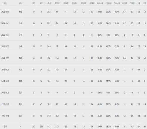 这哥们本赛季至今出战35场比赛首发3次,场均上阵20.8分钟,得到4.6分4板3.9助1.3断,三项命中率30.1%、27.2%和66.7%。