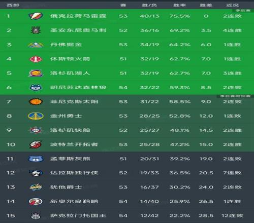 西部最新积分榜