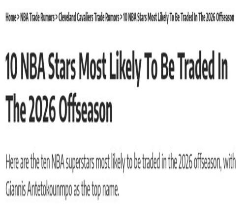 25-26赛季的交易截止日已经落下帷幕,联盟累计68名球员被交易,再度刷新了NBA历史纪录,68中多达10个昔日的全明星球员,更不乏有哈登、浓眉哥、特雷杨这样的大牌球星,但我们都知道,还有几条本该被送走的大鱼最终因为没有找好下家导致交易被搁置。但是在2026年的夏季,他们大概率会再度进入交易市场,引发联盟的地震。美媒《露天看台》列举了2016年休赛期大概率会被交易的10大球星,一起看看有谁吧!