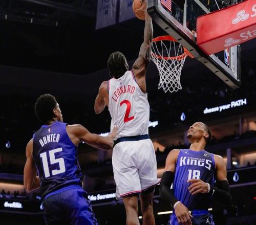 一切因素显示,看来快船又要掉下去了,但最近两场比赛,伦纳德带队分别击败了国王和森林狼,打国王一战没什么好说的,伦纳德31分,国王第四节主动放弃,用替补打完全场;但和森林狼一战,小卡轰下41分8篮板4抢断,最终快船19分大胜完整体森林狼,距离西部第八的勇士只差2.5个胜场。有一幕让人印象深刻,比赛打到第四节还剩9分钟,森林狼全队得分是67分,小卡个人得分是40分,镜头给到爱德华兹,他注视着小卡的方向,陷入沉思。换来的几个新援,加兰+马瑟琳都打不了,这算是小卡单核了吧!