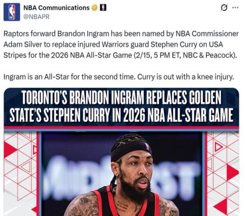 英格拉姆顶替库里入选全明星选择猛龙太明智!
