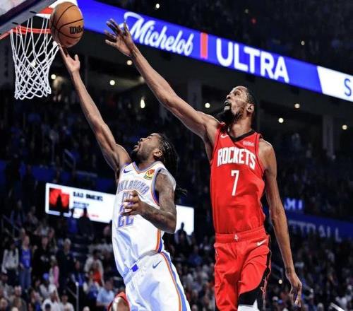 这一点在比赛中体现得淋漓尽致:火箭的进攻不再那么便秘,球的流动更顺畅,杜兰特和申京的接球机会明显增加。火箭本赛季进攻端最大的问题依然是可靠投手不足。缺少足够的稳定外线火力,导致球队经常陷入单打独斗的困境。常规首发阵容中,如果摆出阿门、伊森、史密斯、杜兰特和申京,五人中阿门和申京都属于非典型空间型球员(尽管申京有一定投射能力),对手很容易针对杜兰特实施包夹。雷霆今天就是这么做的,全场用双人包夹甚至“搓澡工”式贴防限制杜兰特,让他难以轻松得分。如果阿门今天能健康出战,火箭的进攻可能还会更拥挤,赢球难度进一步加大。