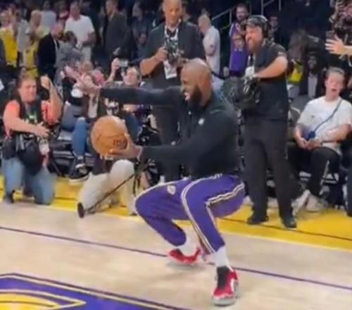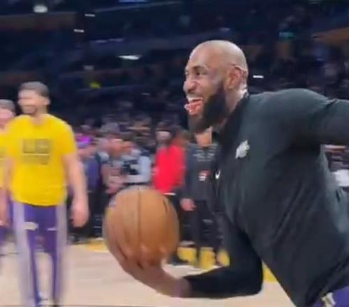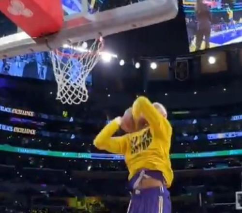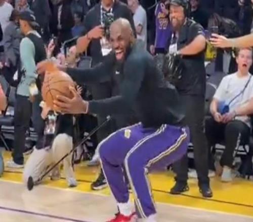 魔性,对独行侠赛前热身詹姆斯舞蹈后助攻海斯空接扣篮
