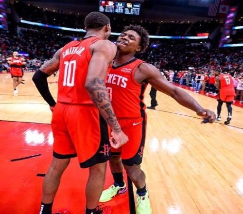 休斯敦火箭队这边其实也是兵强马壮,两位老将亚当斯和范弗里特虽然已经赛季报销,然而火箭队的其余球员基本上都可以出战,其中包括伊森、芬尼-史密斯两位经常被轮休的球员。前一场火箭队虽然不敌快船队,然而火箭队的前锋泰特也迎来了复出,之前他因手部受伤缺阵了几场比赛。而现在,这位30岁的老将终于在和快船队的比赛里复出,在13分钟里,泰特砍下了4分、1篮板、1助攻、1抢断的数据,表现得非常全面,在攻防两端都有所起色。