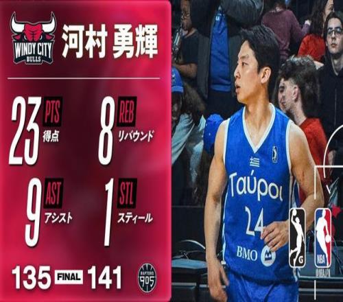 全能身手,河村勇辉G联赛34分钟拿到23分8板9助,三分5中4