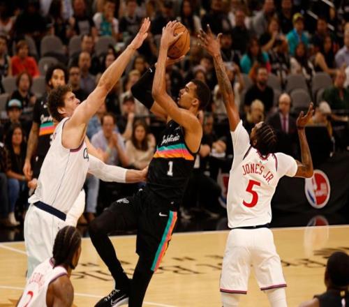 中段邓恩和桑德斯发力打停马刺,此后大洛内外开花,文班亚马一下场,马刺彻底乱了。伦纳德和大洛弹无虚发,瓦塞尔止血后,琼斯和米勒又内突外投,节末马瑟琳造杀伤,巴图姆轰三分球,第一节快船32-25领先马刺。进入第二节,卡斯尔和瓦塞尔连续追分,伦纳德跳步上篮,杰克逊抢断后反击上篮,伦纳德生断科内特反击暴扣,马刺又被打停!中段文班亚马连拿5分止血,巴图姆续上三分,马瑟琳自投自抢,大洛和米勒多点开花,快船已经领先14分!马刺进攻依旧生涩,米勒又续上三分球!