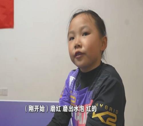 陈思杨训练刻苦,她的小手满是茧子。“刚开始磨红,磨出水泡,红的,后来就不疼了。”陈思杨表示。这位小女孩非常自律,每天的时间安排得满满的,吃饭时间都不能拖拉。陈思杨的文化课学习也不差,在2023-24学期,她获得了数学之星的奖状。