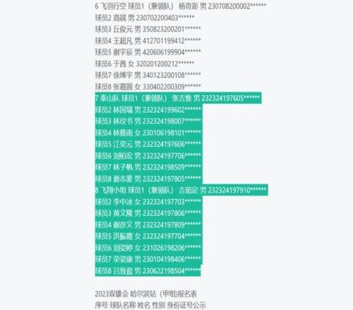 另据VICTOR官网当年稍早前发布的信息,2023年5月13日-14日,2023 VICTOR 双雄会哈尔滨站在哈尔滨市会展中心举行。这次,“张吉惟”身为泰山队球员兼领队,身份证号改成了232324197605******,其队中另外7名球员分别为林国瑞、林玟书、林雅南、江奕云、刘柏宏、林子帆、夏志豪。