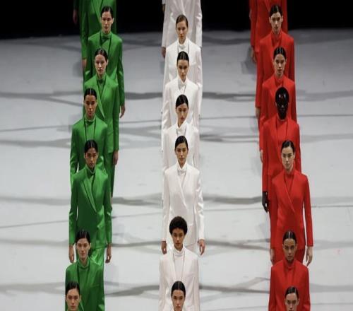 此时,背景的大屏幕上浮现出一张乔治·阿玛尼的黑白照片,他是时尚界最具传奇色彩的人物之一,也与米兰颇有渊源——他毕业于米兰理工大学,于1975年在米兰创立了与自己同名的品牌阿玛尼。2025年9月4日,乔治·阿玛尼去世,享年91岁。在离世前,他已完成了奥运会的服装设计。
