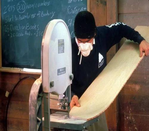 (图 / Jake正在佛蒙特州的谷仓里亲手加工一块雪板)