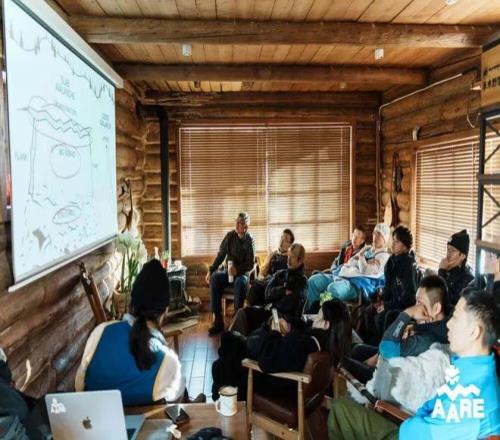图为彭超在禾木举办的一场雪崩安全教育培训活动