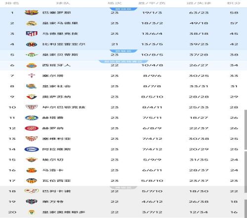 随着皇马20紧追巴萨,马竞01翻车,西甲积分榜出炉:前二差1分