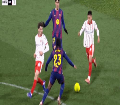 有争议,赫罗纳球员带球进攻踩踏孔德脚踝,进球后var无表示