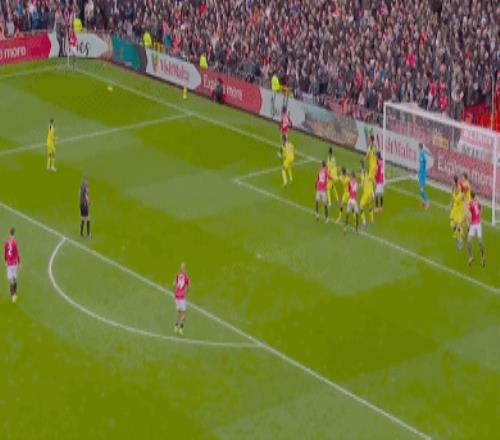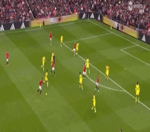 第39分钟,曼联再接再厉,姆伯莫右路传中,索兰克头球后蹭,卡塞米罗近距离攻门,维卡里奥回敬神扑。