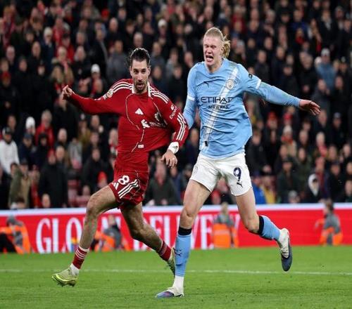 凭借索博斯洛伊打入的任意球世界波,利物浦取得领先。然而,贝尔纳多-席尔瓦、哈兰德各入一球,曼城逆转了比分。