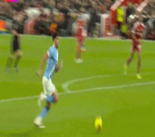 索博斯洛伊打入任意球世界波,曼城以0比1的比分落后。第83分钟,哈兰德头球摆渡,贝尔纳多-席尔瓦铲射破门,1比1!