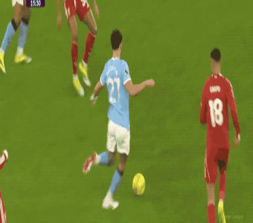 曼城的进攻一浪高过一浪,在前场的施压,迫使利物浦频繁丢失球权。第40分钟,马尔穆什的远射力量十足,但没能命中目标。
