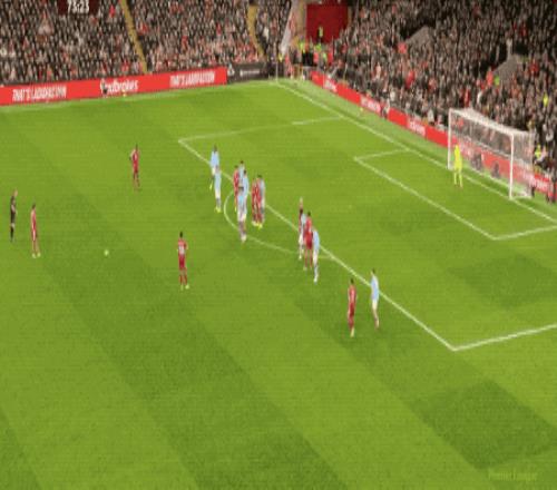 第93分钟,哈兰德操刀主罚,稳稳将球打进,首次攻破安菲尔德的球门,追平父亲在利物浦主场打进3球的纪录。