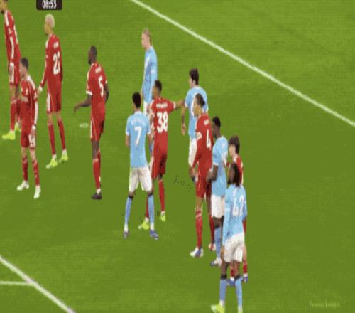 第100分钟,利物浦大举压上,多纳鲁马做出神扑,谢尔基本方半场传球,索博斯洛伊拉拽哈兰德,哈兰德也还以颜色,皮球缓缓滚进空门。