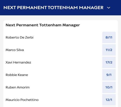 热刺新帅赔率:德泽尔比居首,哈维、阿莫林、波切蒂诺上榜