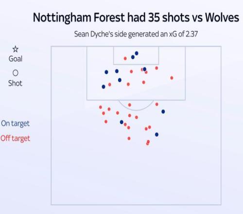 不过在最近的3轮英超中,该队表现不佳,2平1负无一胜绩。重点在于3个对手水晶宫(1比1平)、利兹联(1比3负)和狼队(0比0平)都算是保级战的直接竞争对手,总计9分只拿到2分似乎对森林队相当不利。而在今天凌晨与狼队互交白卷的较量中,诺丁汉森林总计有35脚射门,10次打正门框范围,预期进球值高达2.55却依旧无法取得进球,这大概就是让老板忍无可忍的原因。在马里纳基斯看来,自己已为球队找来了足够多的进攻天才。