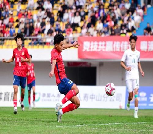 球队当中,布尼亚明、朴慜峻、王伟轩、章琮玺等队员入选过不同年龄段的国少队。球队主教练由此前征战职业联赛的杨昌鹏担任,领队则是外界熟悉的原广州队主教练刘智宇。本场比赛,上半场进行到第9分钟,广东队由29号夏睿智率先打破僵局,第12分钟,广东队26号布尼亚明通过点球扩大领先优势,将比分变为2比0。下半场广东队进行人员调整,第88分钟,来自中山本土的陈治平出场,现场爆发出热烈掌声,陈治平出场之后,在禁区内创造了一次进球机会,差点破门,此后双方虽互有攻守,但均未能改写比分,2比0的比分保持到终场结束。
