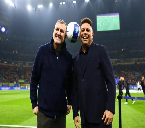 2025/26赛季欧冠淘汰赛附加赛次回合开赛前,蓝黑军团球迷有幸再次见证两位传奇维埃里和罗纳尔多并肩出现在...